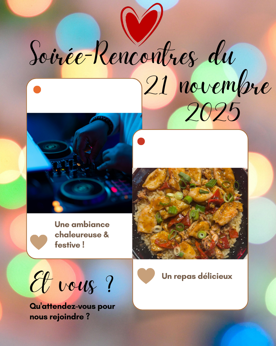 Une soirée dédiée aux célibataires pour se rencontrer, échanger, rire et partager un moment agréable dans un cadre chaleureux